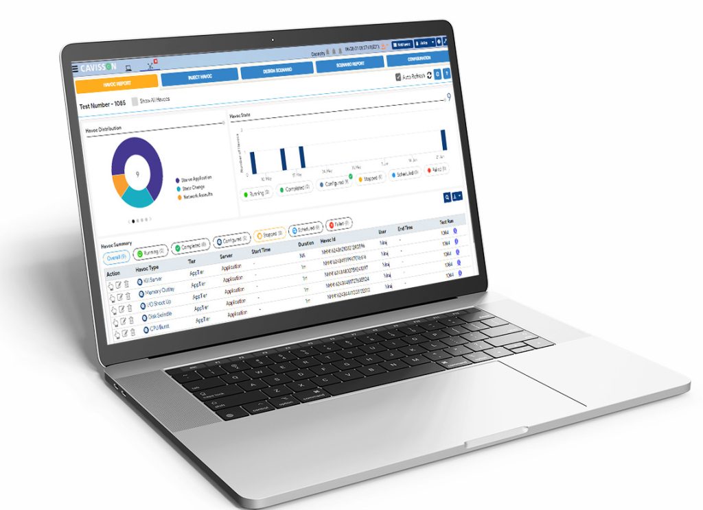 Visualize the performance of the application during and after the chaos in the application environment in real time. Reporting presents a summary of all havocs and scenarios.